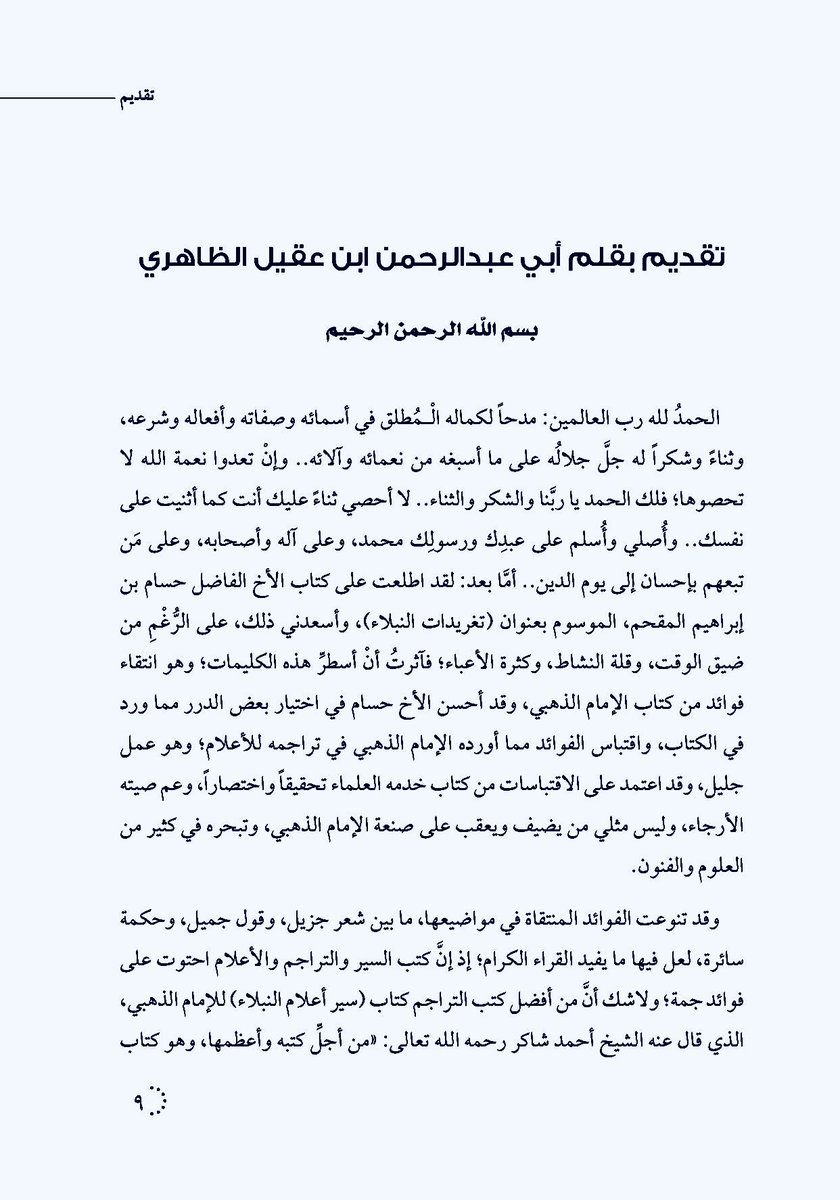 ▫️والأولى للأديب الكبير، الشيخ أبي عبدالرحمن بن عقيل الظاهري.