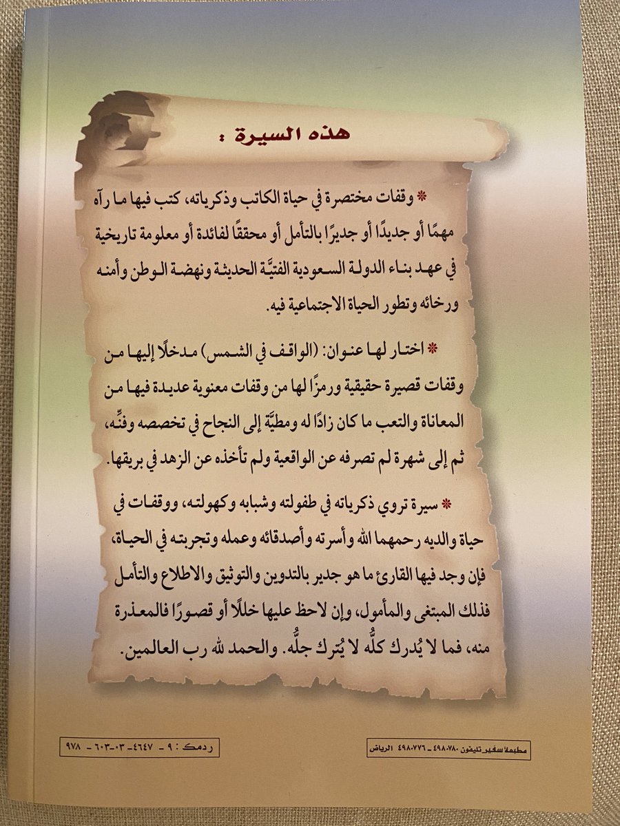 ثم ختم الكتاب بحادثة مؤلمة وهي وفاة والدته رحمها الله وتزامن ذلك مع مرضه وعلاجه بالكيماوي، ونحمد الله على سلامته.