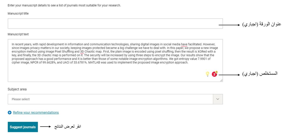♦️من الطرق الأخرى المشهورة هي المواقع التي تقترح على الباحث المجلات المناسبة حسب عنوان مقالته والمستخلص وسأستعرض معكم بعضها هنا