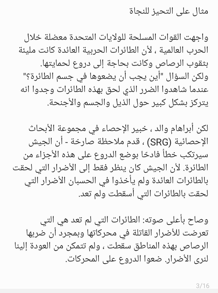 وسماع نوادر قصص النجاح فقط واهمال غيرها من قصص الفشل لايعالج الامور ابدا. ويسمى في علم #البيانات وعلم النفس الاجتماعي والاقتصاد السلوكي : "تحيز النجاة" #SurvivorshipBias.
