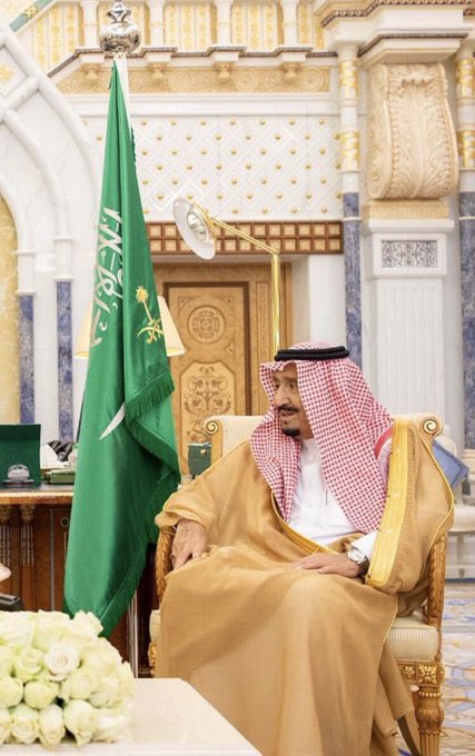 9️⃣ اما علم ولي العهد يطابق العلم الوطني في أوصافه ويطرز في الزاوية الدنيا منه المجاورة لعمود العلم بخيوط من الفضّة شعار الدولة وهو السيفان المتقاطعان تعلوهما نخلة.