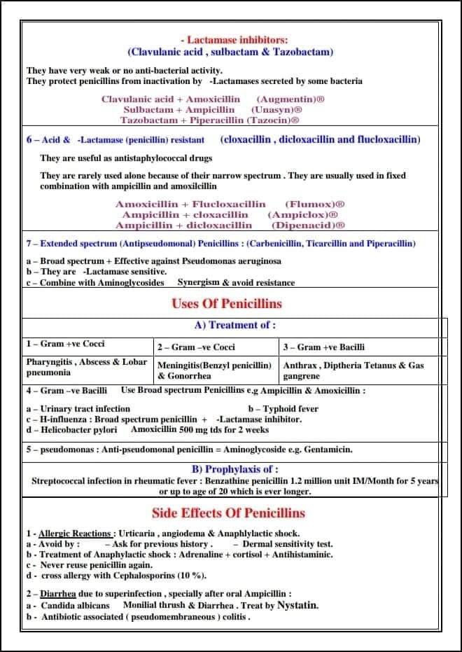 💢 ملخصات عن المضادات الحيوية 💢