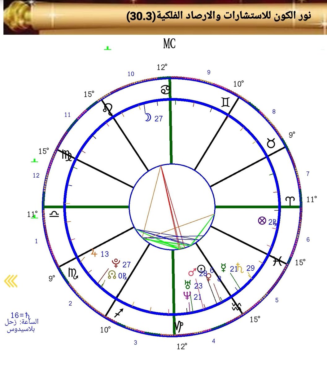 الانتهاء للعقرب وهو من الابراج الدالة على السحر وطالع التحويل الميزان وعودة طالع المولد بالتحويل يعني تحقق ادلة موجودة بخارطة المولد او انها سنه مصيرية ونرى بخارطة التحويل ان الزهرة حاكم طالع التحويل هي نفسها حاكم البيت ١٢ وكما ذكرته بمقالة هل انت مسحور هذه من ادلة التعرض للسحر