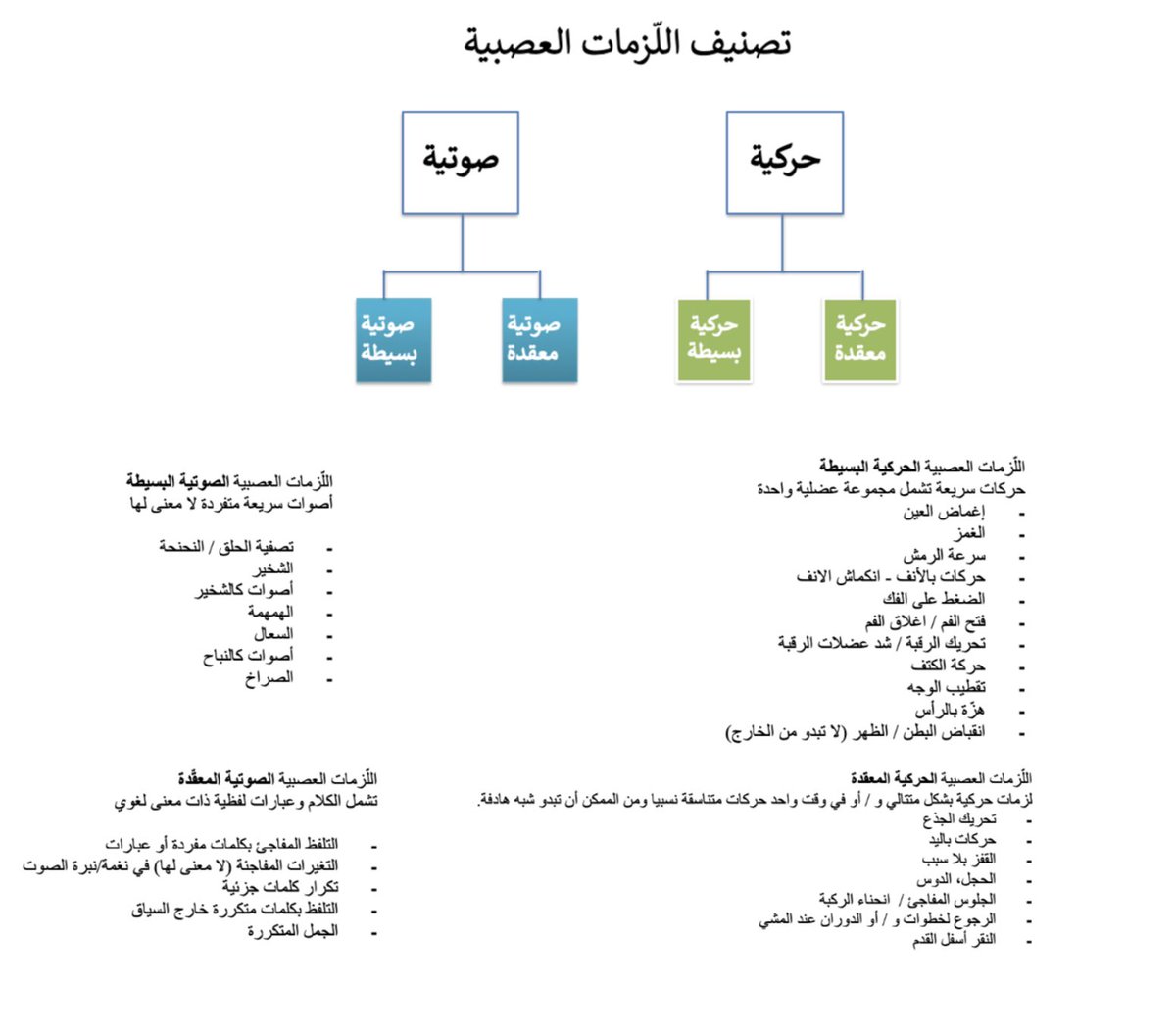 إغماض العينين، تحريك العينين، تحريك اللسان، تحريك الفم/ الأنف، رفع الأكتاف، تحريك ا لرقبة وغيرها من الحركات في أي مكان آخر في الجسم ↪️