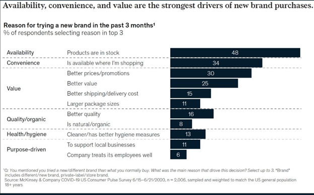يؤثر تواجد المنتج Availability على حجم المبيعات بشكل كبير في قطاع المواد الاستهلاكية سريعة الحركة FMCG, كما هو موضح في الصورة التالية: