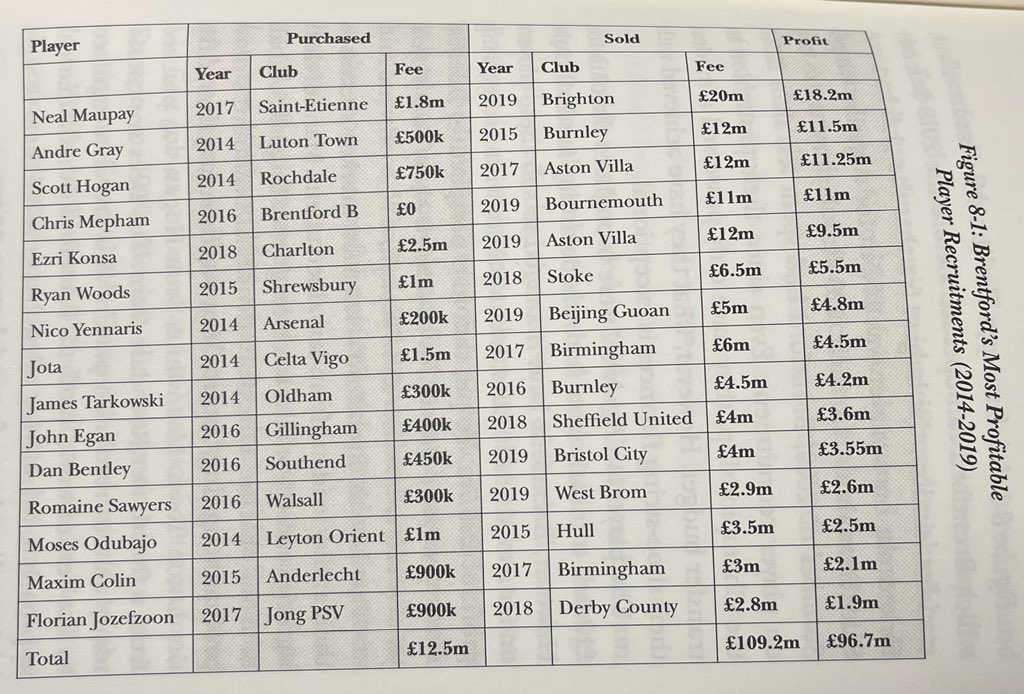 قام نادي برينتفورد ببيع و شراء لاعبين خلال الخمس سنوات المنقضية. علي سبيل المثال نيل موباي، شراءه ١.٦ مليون، بيعه ١٨ مليون إسترليني. سكوت هوجان شراء ٧٥٠ الف، بيع ٨.٧ مليون. تم ذلك عن طريق اكتشاف و ثقل المهارة باستخدام مجموعة القياسات و تكنولوجيا المعلومات #تكنولوجيا_الملاعب