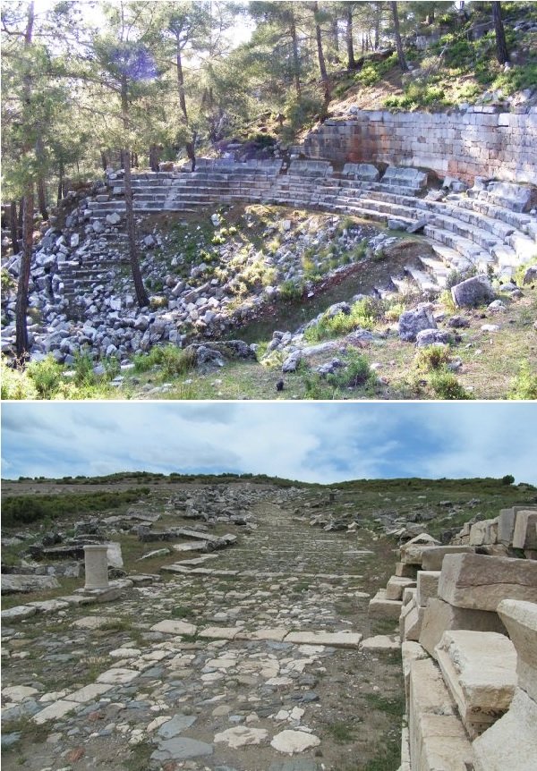 بُني المسرح الروماني Ancient theater and acropolis في القرن الأول ودمر بسبب زلزال عام 141 وأعيد بنائه مجدداً