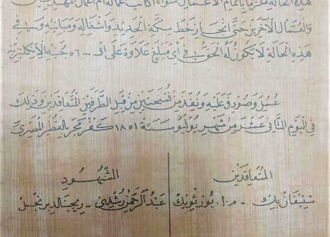 8-وتم تحديد مدة 4سنوات فقط للانتهاء من إنشاء وتشغيل الخط والذى يبلغ طوله 209كيلو مترا، العقد كُتب باللغتين العربية الفصحى والإنجليزية يتكون من تمهيد يشرح فيه المراسلات والاتفاقات ويتكون من 18بند منها 7التزامات صريحة على الشركة الإنجليزية و8التزامات على سمو الخديو عباس 👇