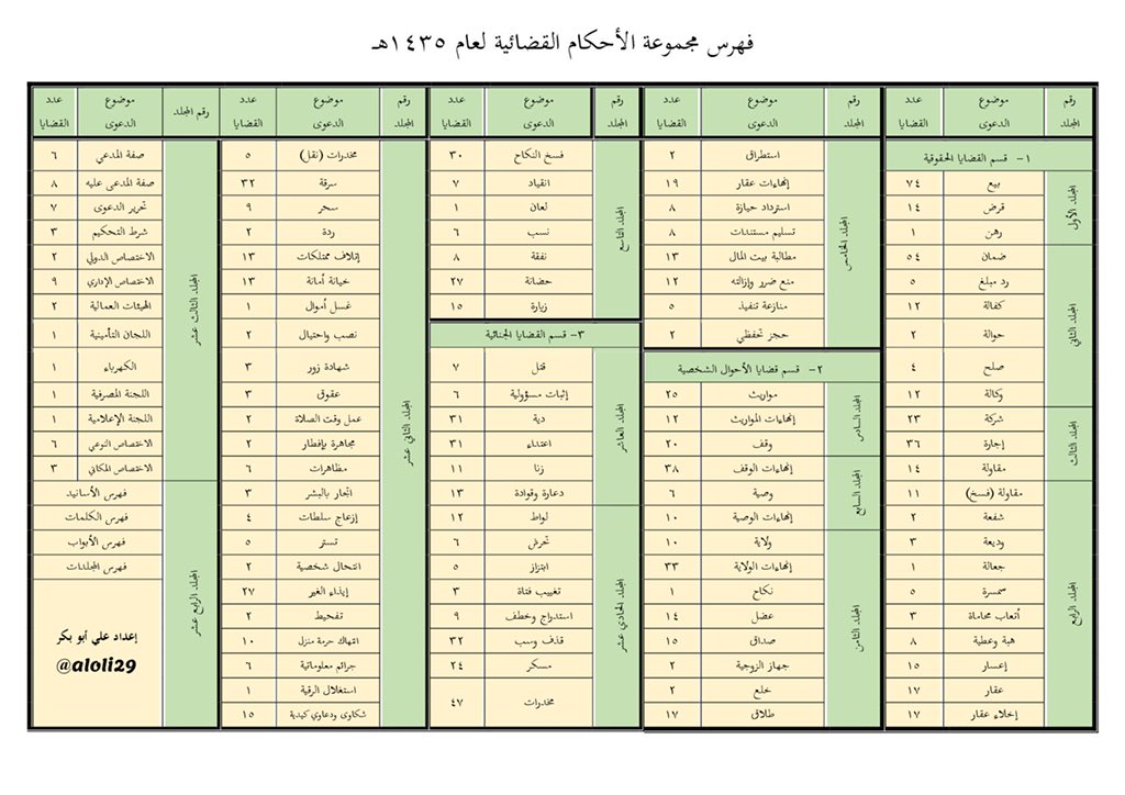 ابحث عن موضوعك في فهارس مجموعات الاحكام للاعوام ١٤٣٤ و ١٤٣٥، الشكر موصول للاستاذ / علي ابو طربوش لإعدادها @Aloli29