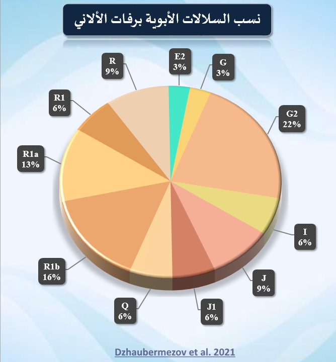 نسب السلالات الأبوية بمدافن شعب الألاني بشمال القوقاز ضمن 32 عينة أهمها :