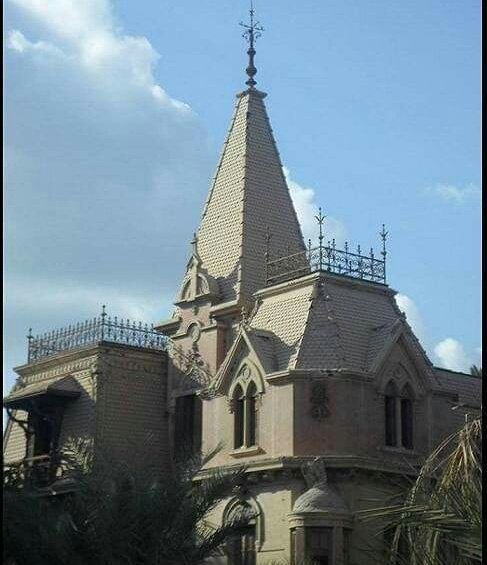 4-أعلى القصر تزينه قبة والتي تعلوها الاتجاهات الأربعة ومكتوب عليها حروف اللغة الإنجليزية لتزيينها وتحيط بالقصر حديقة مزروعة بأشجار المانجو وصل عددهم حول القصر إلى90شجرة بالإضافة إلى عدة أشجار نادرة حرص الخواجة على الحفاظ عليها زي الكافور واللي باقي منها لغاية دلوقتي كام شجرة 👇