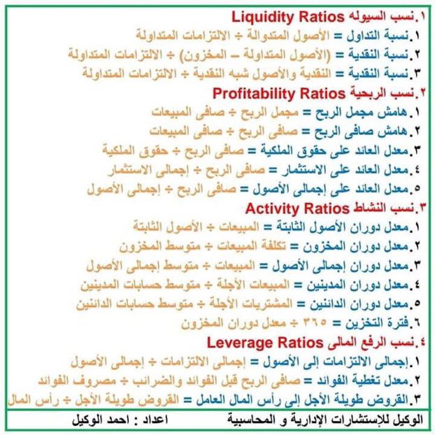 اولا: النسب المالية تحتاج إلى فهم و تركيز(حفظ لا).