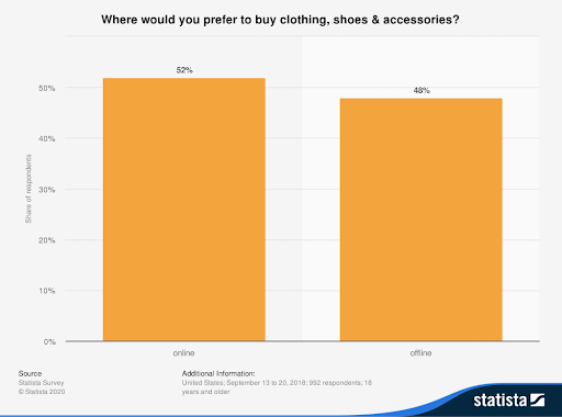 سوق الملابس في التجارة الإلكترونية في أمريكا يقدر ب100 مليار دولار امريكي! بناء على أحصائية مأخذوه من موقع Statista