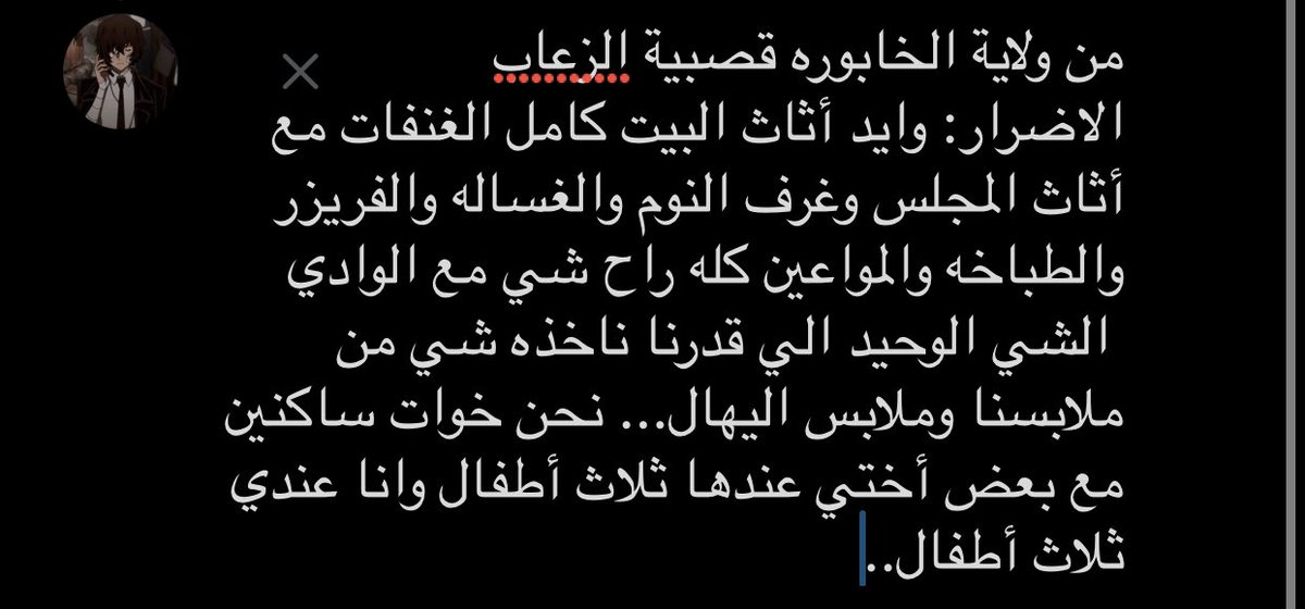 والمطلوب : ناقص اكل وماي ملابس غيرات اطفال حفاض بطانيات وفراش وكذا