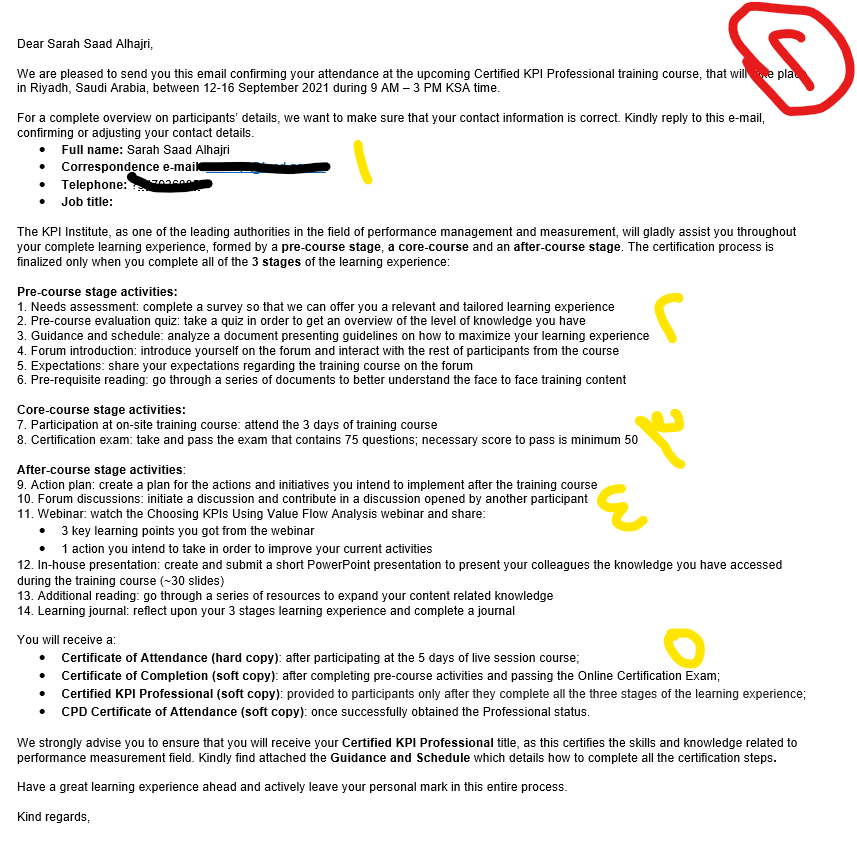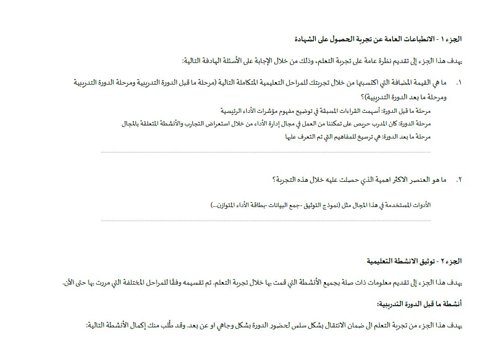 الانتهاء من الدورة والامتحان (برنامج تدريب من المهم التركيز +الامتحان سيذكر المدرب بعض الأسئلة وقت الجلسات و بالإضافة الى مراجعة الجلسة(ستجدها داخل الحقيبة التدريبية)✔️ بالتالي تحصل على شهادتين حضور واجتياز