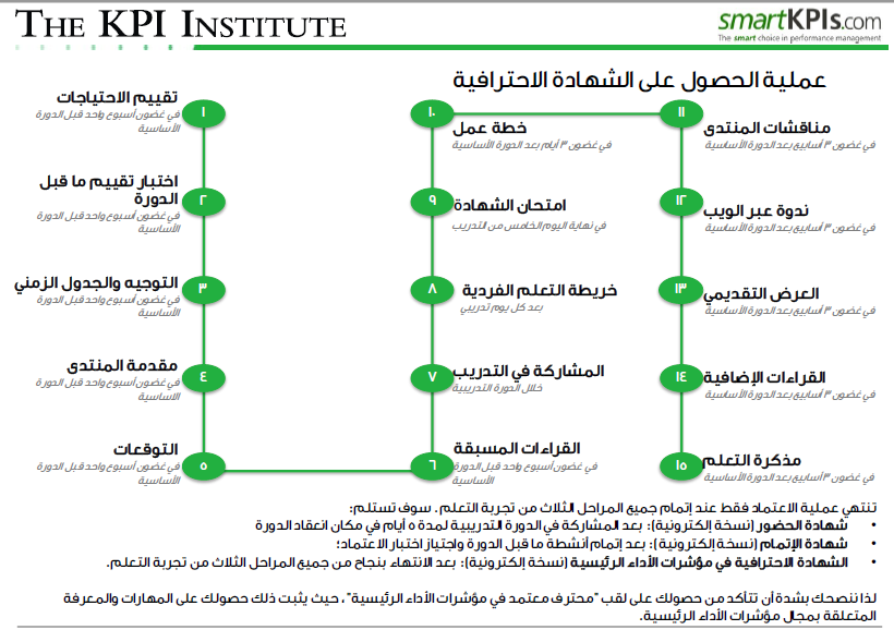 فأن مقدم الشهادة الاحترافية للمؤشرات: هو معهد مؤشرات الأداء الرئيسية وهو مهتم في 12 مجال مختلف مثل الاستراتيجية والمؤشرات وإداء الموظفين كما يقدم حلول برمجية لتخدم هذا المجالات