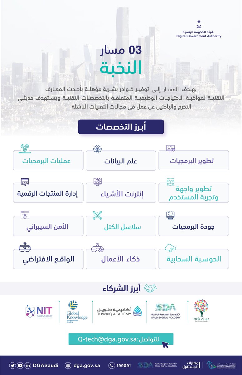 مسار النخبة أحد مسارات برنامج تطوير القدرات الحكومية الرقمية #قدرات_تك بالتعاون مع #مهارات_المستقبل يوفر كوادر مؤهلة في عدد من التخصصات التقنية