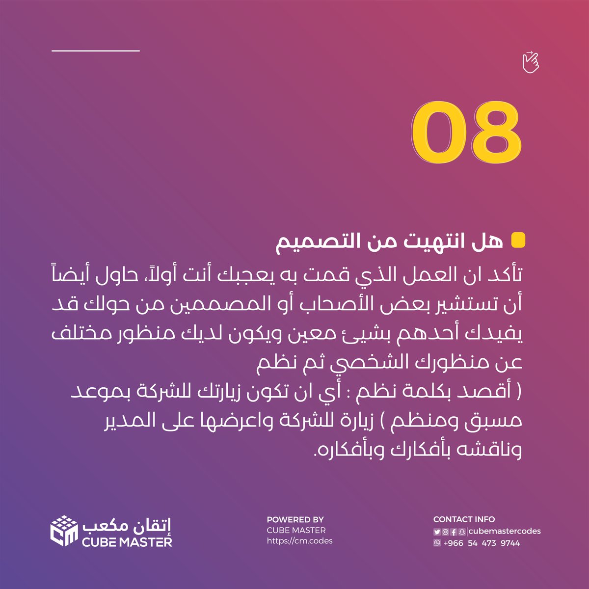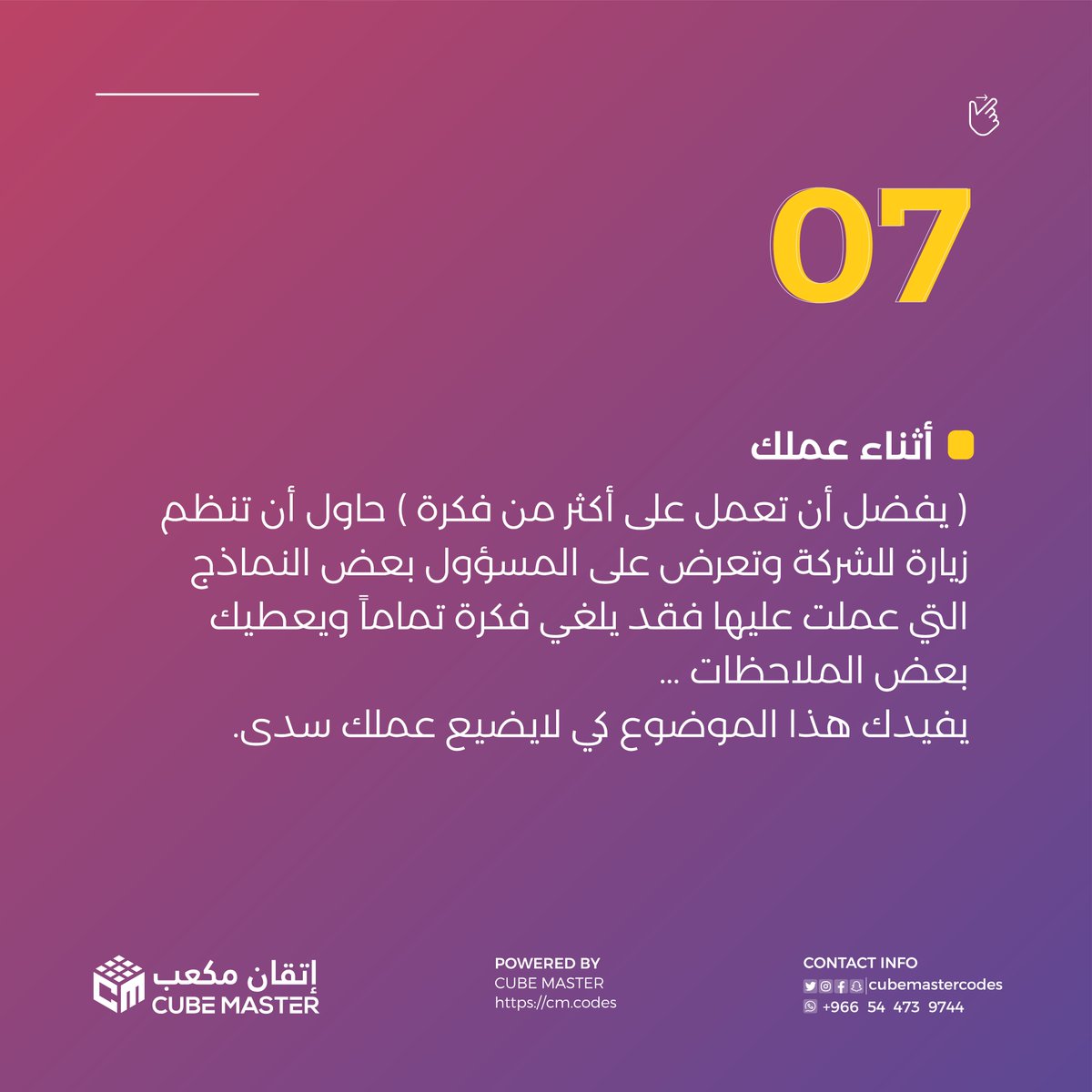 ( يفضل أن تعمل على أكثر من فكرة ) حاول أن تنظم زيارة للشركة وتعرض على المسؤول بعض #النماذج التي عملت عليها فقد يلغي #فكرة تماماً ويعطيك بعض #الملاحظات … يفيدك هذا الموضوع كي لايضيع عملك سدى.