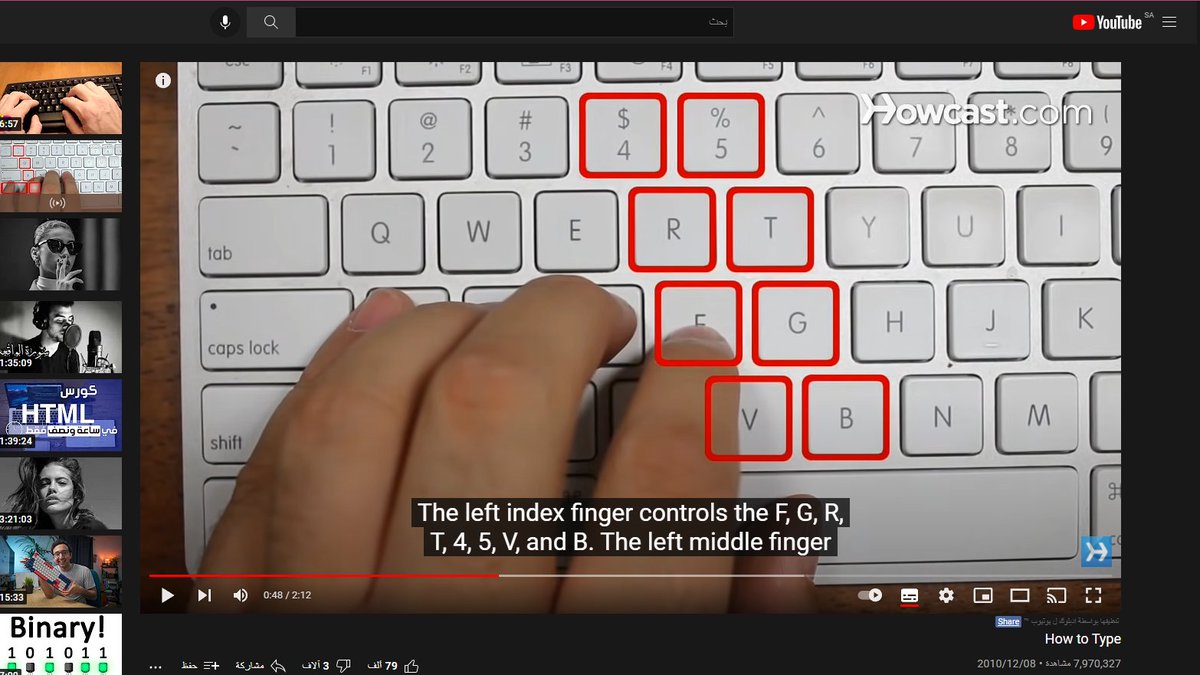 وضع اليدين بالطريقة الصحيحة و السليمة التي تمكنك من الوصول الى جميع الأزرار الموجودة في اللوحة،هي اول خطوة في تعلم مهارة الكتابة دون النظر الى لوحة المفاتيح و بهذا المقطع شرح توضيحي بموضع اليدين الصحيح
