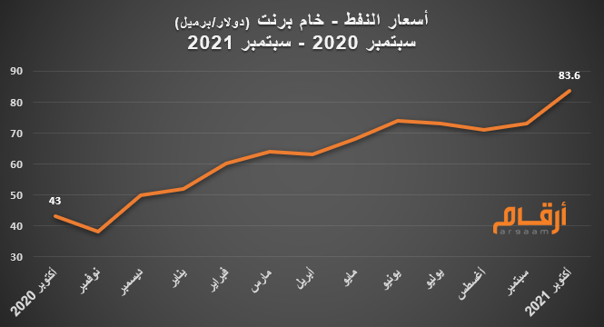 رسم 1: #النفط، إرتفع بـ 100% تقريبا فى عام.