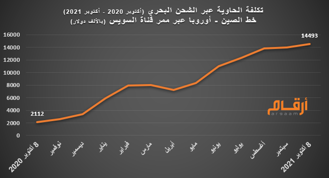 رسم 7: تكلفة شحن #الحاوية الواحدة عبر #قناة_السويس صعدت بـ 586%.
