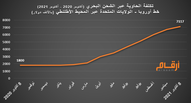 رسم 8: تكلفة شحن الحاوية الواحدة عبر #المحيط_الأطلنطي صعدت بـ 295%.