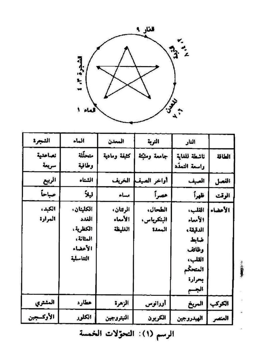 وترتبط هذه المراحل الخمس بعناصر عديدة كالأوقات المختلفة من النهار وفصول السنة وأعضاء الجسم والكواكب والعناصر الكيميائية التي تمثل أنواع الطاقة.
