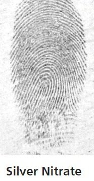 يتم رش محلول يحتوي على ماده ال silver nitrate على الاسطح، راح يتفاعل مع الاملاح الي تكون موجوده في البصمة ويحولها ل silver chloride