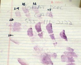 عباره عن نشر بودره ناعمه على الاسطح بإستخدام فرشاة ناعمة، وتلصق البودره في البصمات،هنا راح تصير البصمات مرئية وبعدها يتم رفعها بشريط لاصق