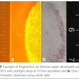 تتفاعل هذي الماده كمان مع الأحماض الأمينية الموجودة في البصمات ، وتصير واضحة عند تعريضها ل blue-green light