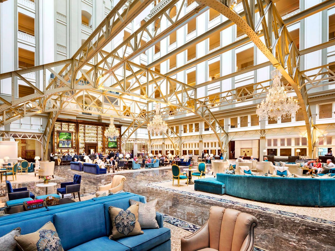 5💥يضمّ الفندق 263 من الغرف والأجنحة الفاخرة، وهو الأكبر في العاصمة #واشنطن، يتميز بأسقف عالية بارتفاع 16 قدمًا، ونوافذ مرتفعة، وزخرفات خرسانية تاريخية، ومجموعة فاخرة من المصابيح الجدارية والثريات المتلألئة من الكريستال.