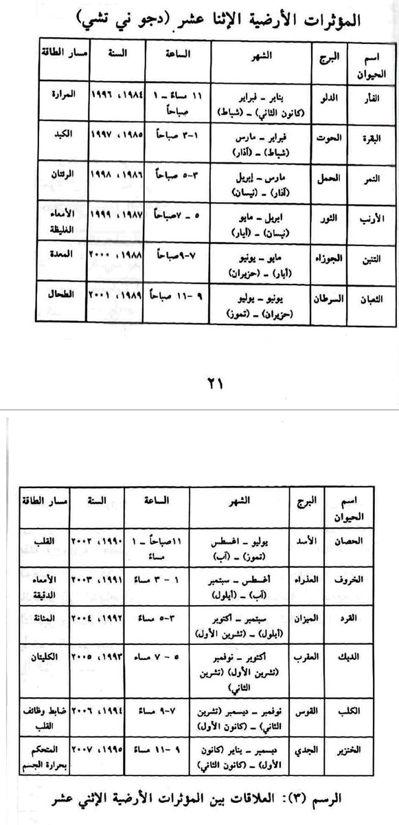 🔟وفي الطب الشرقي أيضاً ، اثنتا عشرة فترة ، مدة كل منها ساعتان من اليوم.