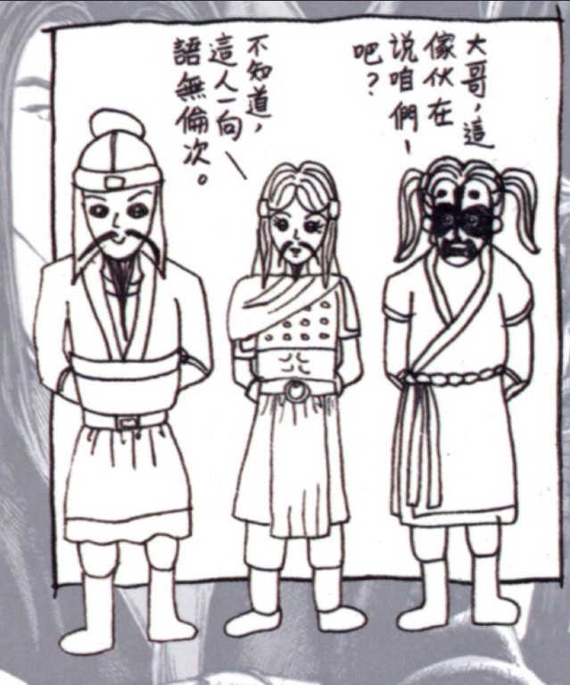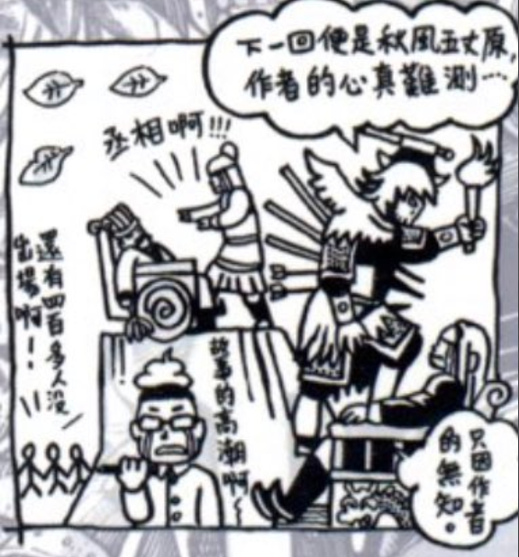 لا تمانعنا نحن فناني الكوميك رسم اشياء غريبة في القصة، لأن القصة لن تكون مسلية بدون مبالغة، على الرغم من المبالغة، غوان الخاص بي لا يقدر على الطيران، تشانغ فاي غير قادر على قسم جبل بيديه العاريتين، تساو تساو ليس فتى مثير (جذاب) و كونغ مينغ ليس قادر على عمل السحر