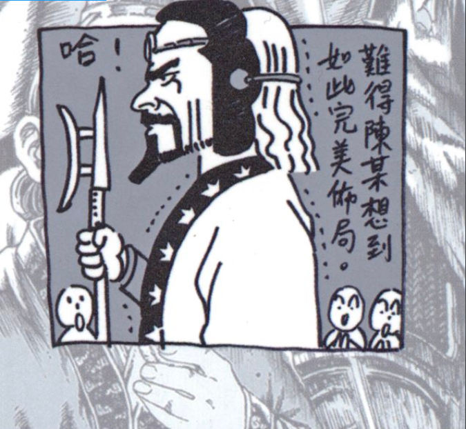 ويلات تالياً: انظر و تمعن في التاريخ الصيني, ستستنتج و تلاحظ ان "المبارزات" لا وجود لها. المبارزة رجل ضد رجل هي ليست سوى أدوات لأحداث حبكة قصصية. نقطة التحول الحقيقية للمعركة تعتمد على الإستراتيجيين. الفوز على الرغم من الأحتمالات السيئة - وهذا هو جوهر الاستراتيجية.