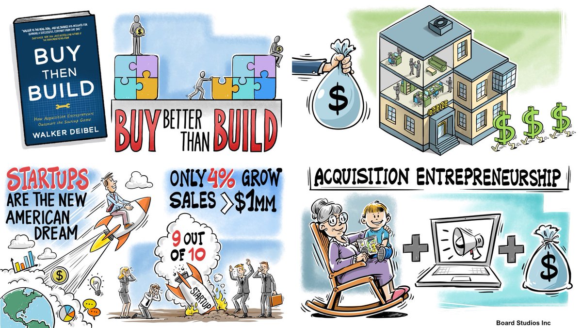 سلسلة تغريدات من كتاب Buy Then Build للمؤلف Walker Deibel.