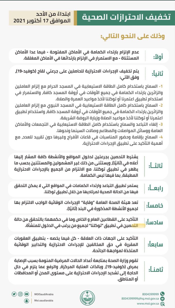 1️⃣8️⃣تاريخها ورغم كل الأزمات التي مرت بها لم تُفرض فيها حالة الطوارئ، وهذه أول مرة يمنع فيها التجول. الجزئية الأخرى، تنبؤ حكومة المملكة بما يمكن أن تصل إليه الأمور والخطوات الاستباقية والاحترازية التي اتخذتها في هذا الشأن، وأيضا الخبرة التراكمية التي نشأت..