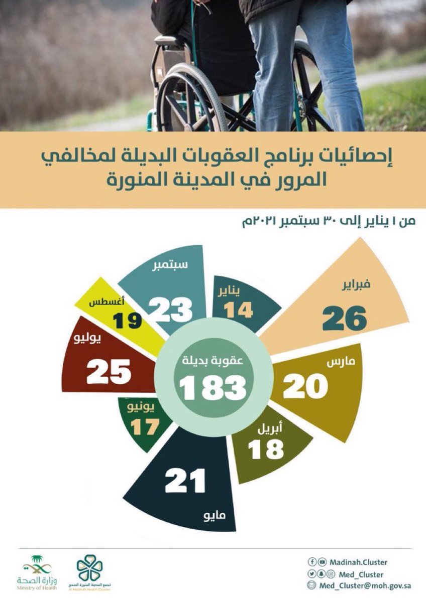 تطبيق 183 عقوبة صحية بديلة بحق مخالفي الأنظمة المرورية في المدينة منذ مطلع العام الحالي.