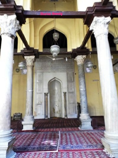 4-ويتوسط جدار القبلة محراب يعلوه لوحه تسجل التجديدات التي أجراها الأمير "يلبغا السالمي".