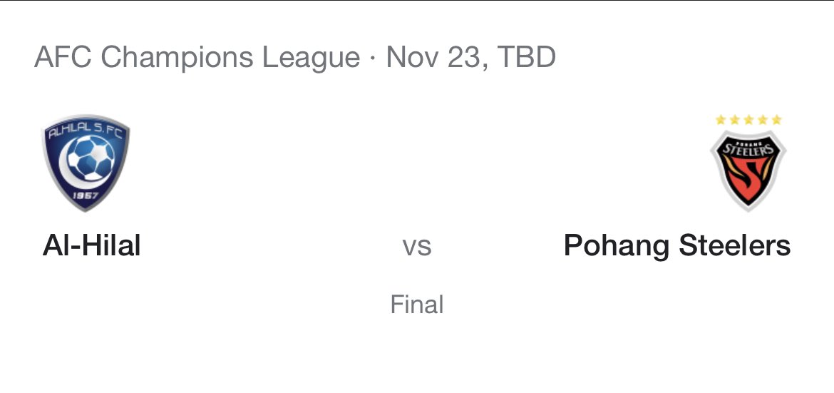 تغادر بعثة بوهانج الكوري الى الرياض يوم 17 نوڤمبر إستعدادًا لنهائي دوري أبطال اسيا أمام #الهلال السعودي.