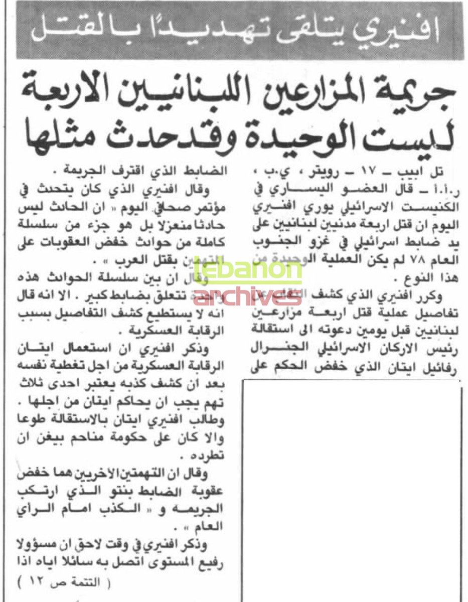 وتوجهّت في اليوم التالي مظاهرة إلى مبنى صحيفة “عولام هزه" (أي هذا العالم) التي يرأس تحريرها أفنيري وضمّت متطرفين ومتشددين صهاينة وعلى رأسهم الحاخام الصهيوني مائير كاهانا (مؤسس حركة كاخ المتطرفة إغتيل عام ١٩٩٠ في الولايات المتحدة أثناء إلقائه خطاب بين أنصاره)