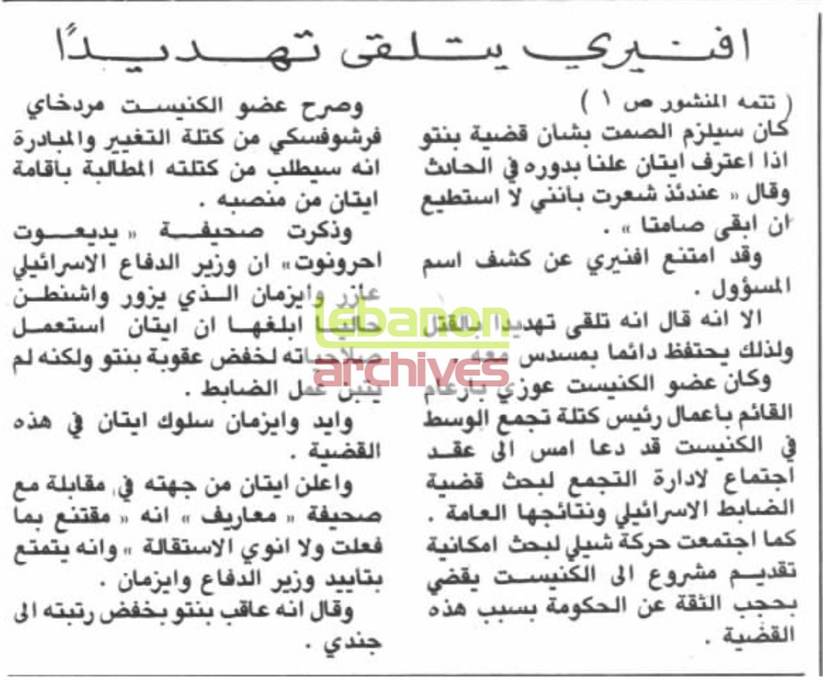هذا وقد كشفت زوجة ساديه أنه كان ينفذ أوامر إيتان بعدم جلب أي أسير.