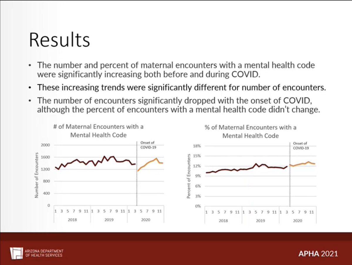 🔸دراسة عن الأمراض النفسية للنساء في مرحلة الحمل والولادة خلال الجائحة. درسو سجلات غرف الطوارئ في مستشفيات متعددة في اريزونا . #APHA2021