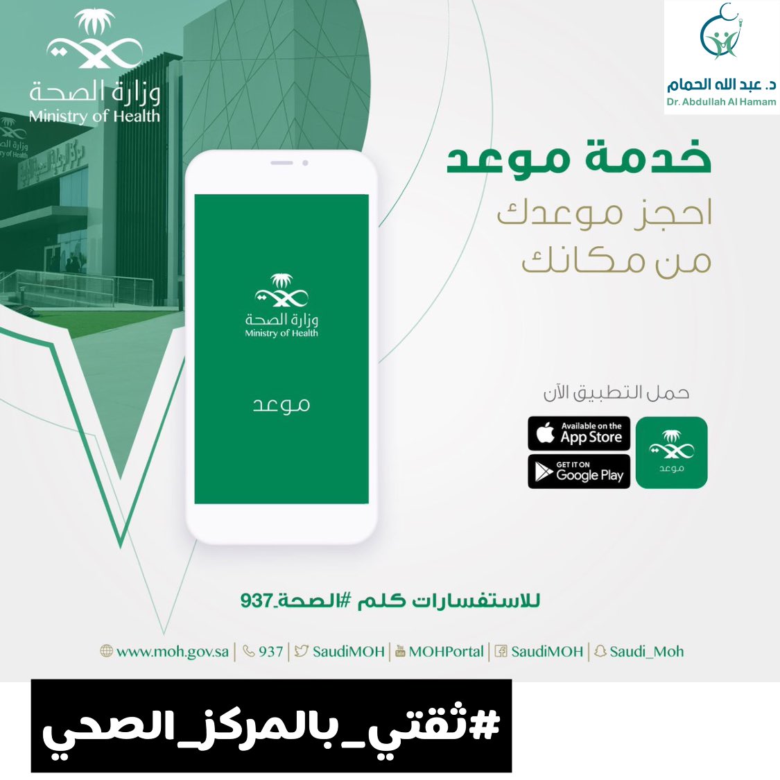 بعد ما تدخل على التطبيق تروح ل ( حجز موعد) تقدر تحجز موعد ( حضوري أو عن بعد )
