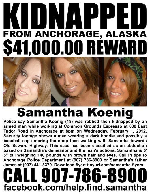 كان واضح أن سامانثا في الصورة لم تكن كاملة الوعي و كان هنالك رجل يمسك نسخة من جريدة لتوثيق التاريخ الذي كان (١٣، فيبراير) - اي من اسبوع تقريبا.