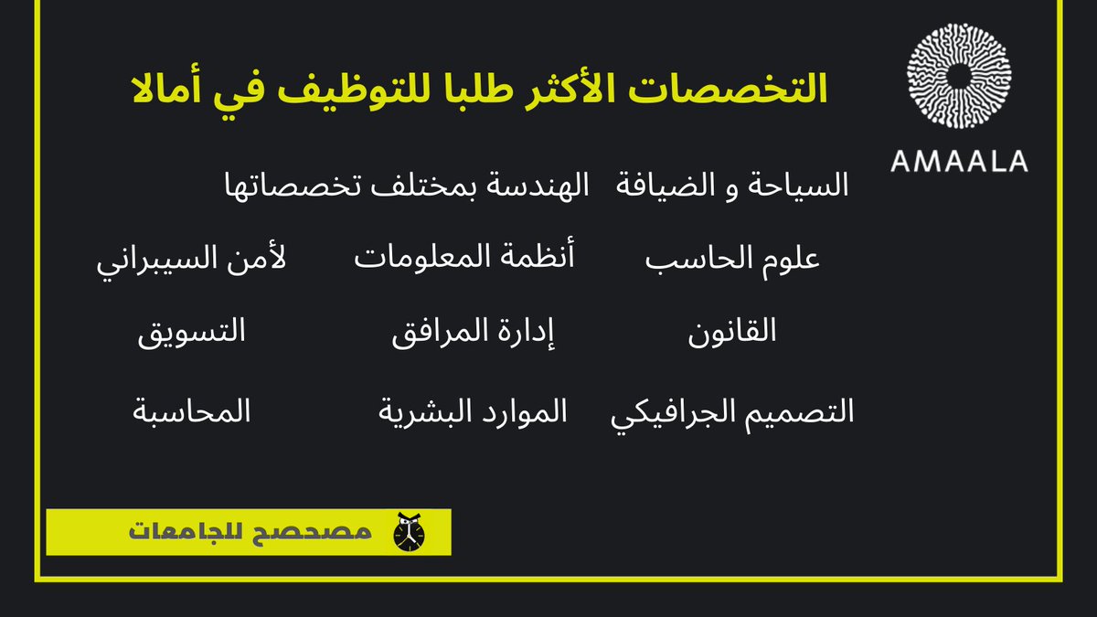 التخصصات الأكثر طلبا للتوظيف في أمالا موضحة بالصورة إذا ودك تختار أحدها كتخصص جامعي لك أو تطور مهاراتك فيه
