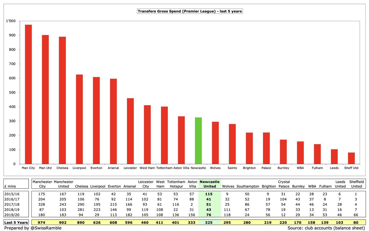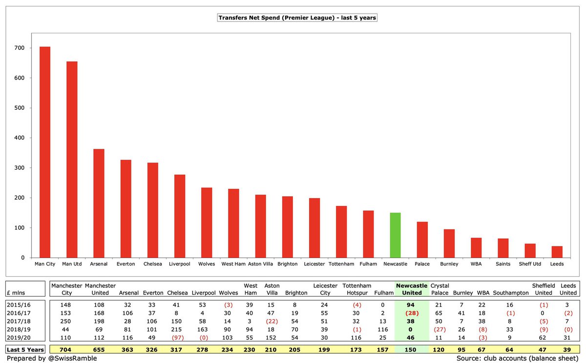 💰 | بعد الإستحواذ على نادي نيوكاسل يونايتد من قِبَل صندوق الإستثمارات السعودي [ PIF ] بنسبة 80% ، يتوقع مُشجعوا نيوكاسل يونايتد ثورة إنفاقٍ هائلة و لكن كم يُمكن للنادي أن ينفق وفقًا لقواعد اللعب المالي النظيف [ FFP ] ؟