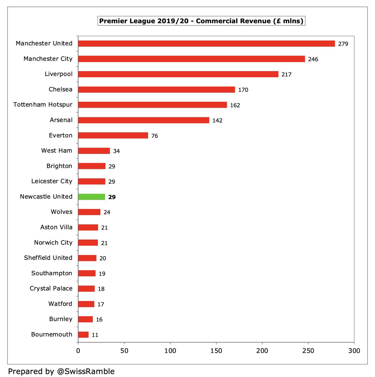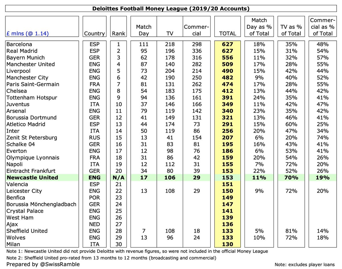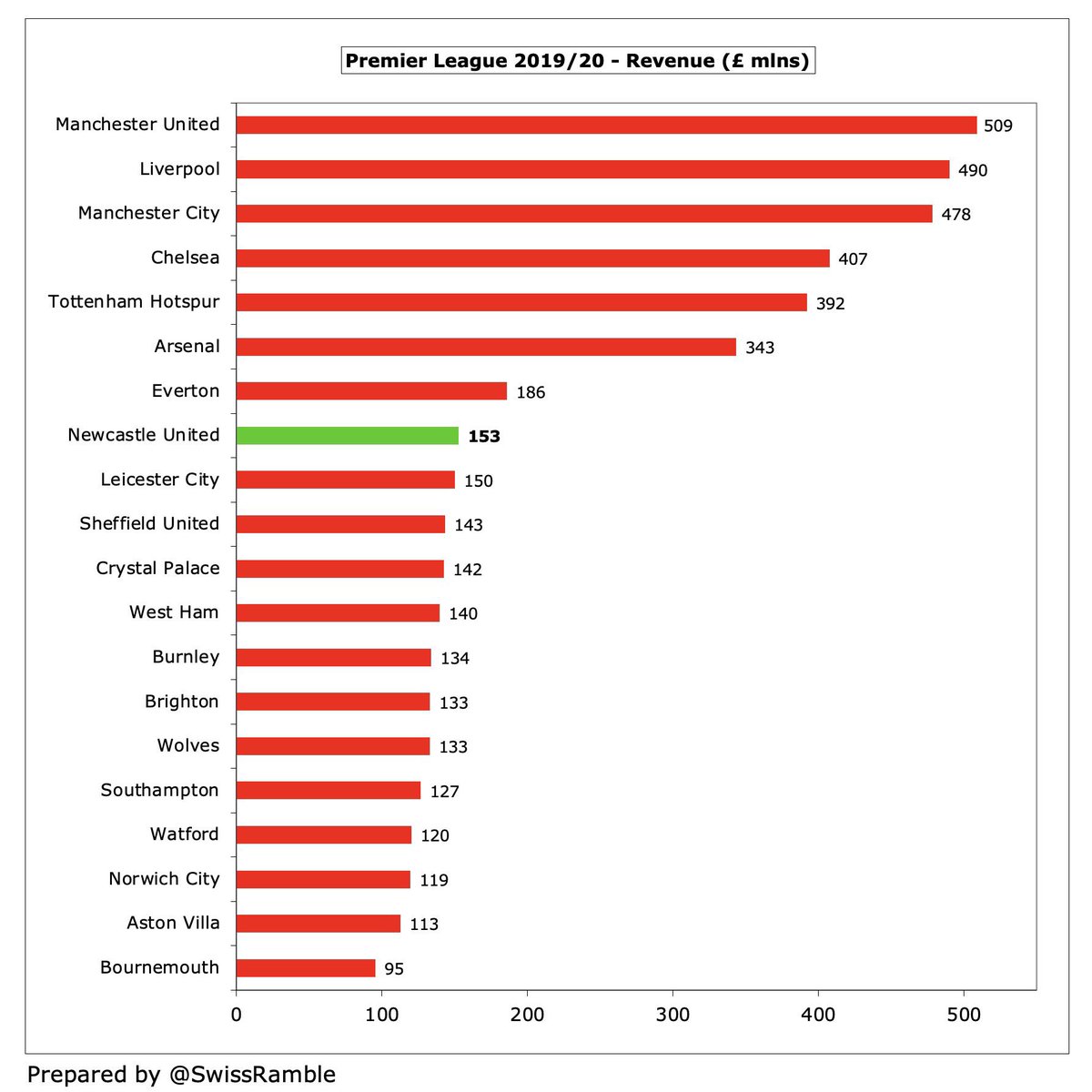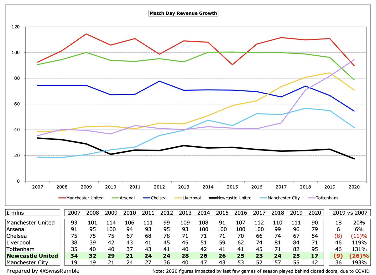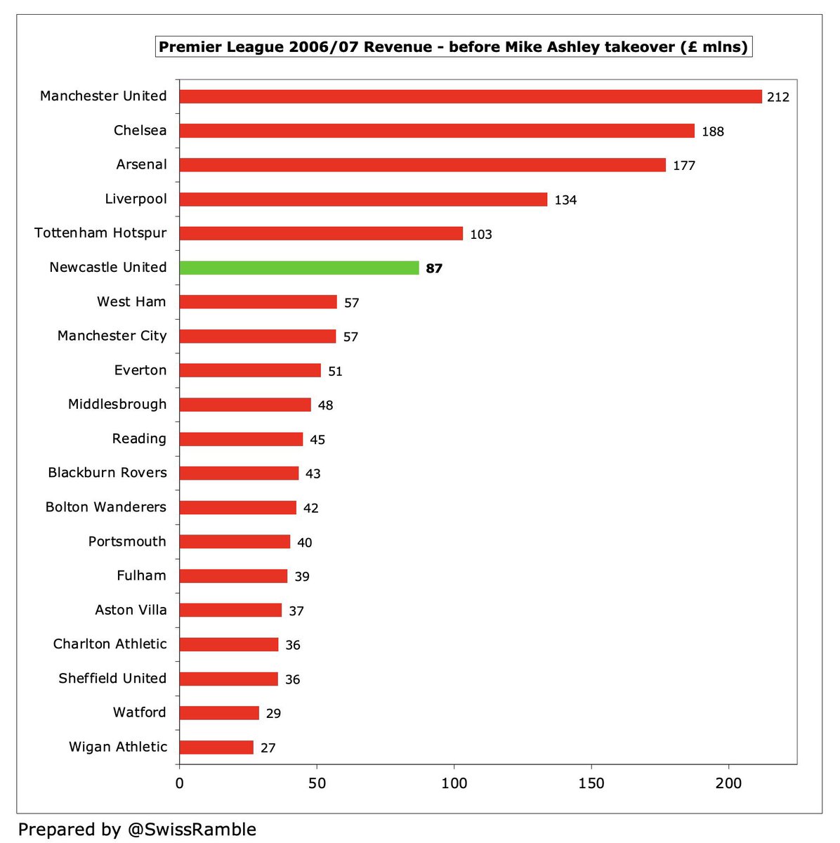 مانشستر يونايتد كان يبتعد بأميال عن نيوكاسل يونايتد حيث حقق مانشستر يونايتد إيرادات بقيمة 509م£ و مع ذلك، نيوكاسل يونايتد كان سادس أعلى إيرادات في البريميرليغ قبل وصول مايك اشلي