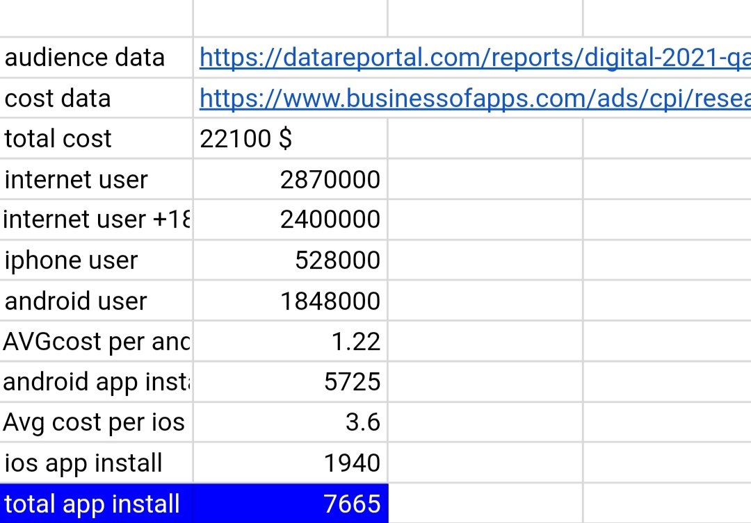 + متوسط التكلفه لتلك الخدمات و كم عدد التنزيلات التطبيق المتوقعه ضمن المعطيات التاليه :