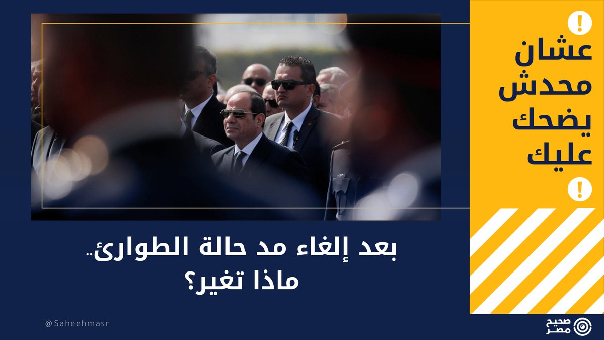 ⚠️ إمبارح أعلن الرئيس عبد الفتاح السيسي، إلغاء مد حالة الطوارئ، المستمرة لأكتر من 4 سنين، من أبريل 2017، بعد تفجير كنيستين. وعلى سيناء من 2014، وكان آخر مرة مُد قانون الطوارئ في شهر يوليو اللي فات، بحسب القرار 290.. ولكن مع إلغاء مد حالة الطوارئ ماذا تغير؟ (يُتبع👇)