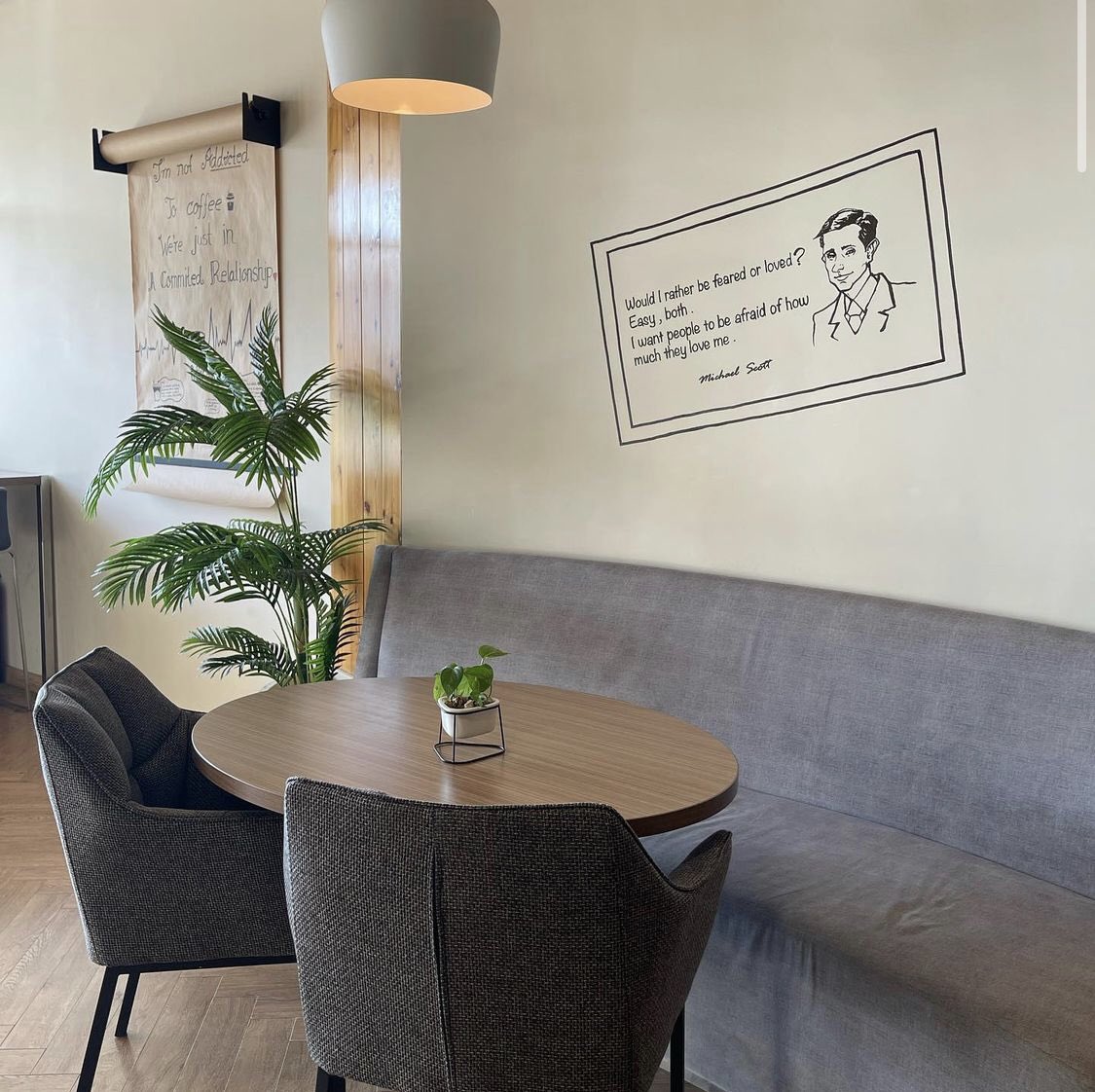 -أحب تصميم المقهى والجلسات ، هادئ جداً.